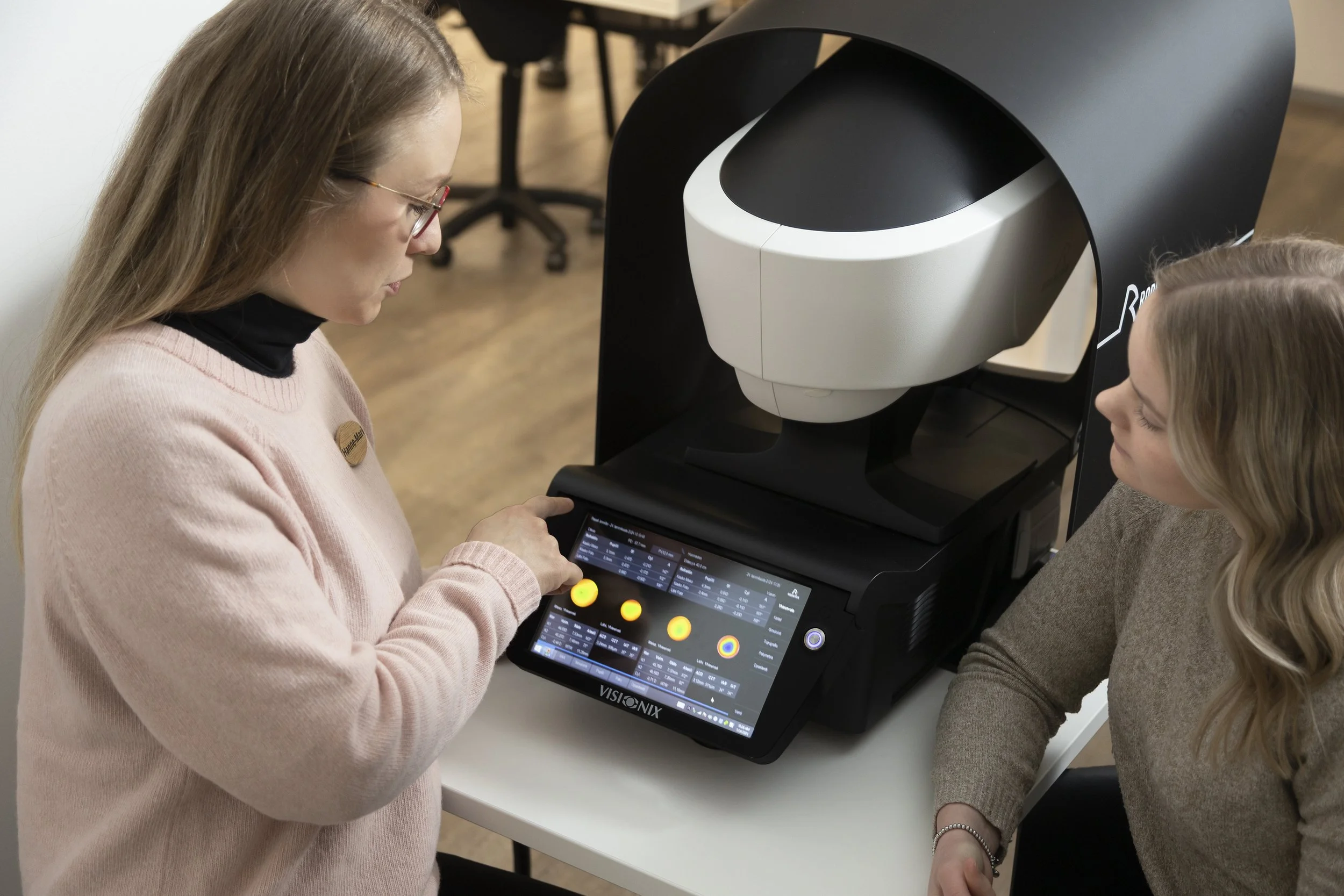 Teemme näöntarkastuksen rauhassa ja huolellisesti. Käytämme näöntutkimuksen tukena edistyksellistä biometristä näköanalyysiä aina tarvittaessa.